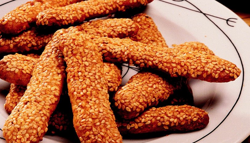 Hamurdan ceviz büyüklüğünde parçalar koparın. Hamurlara parmak şekli verin. Yağlanmış fırın tepsisine dizip, üzerilerine fırça yardımıyla pekmez sürün. Bol susam serperek, ısıtılmış 200 derece fırında, altlı üstlü pembeleşene dek pişirin.
