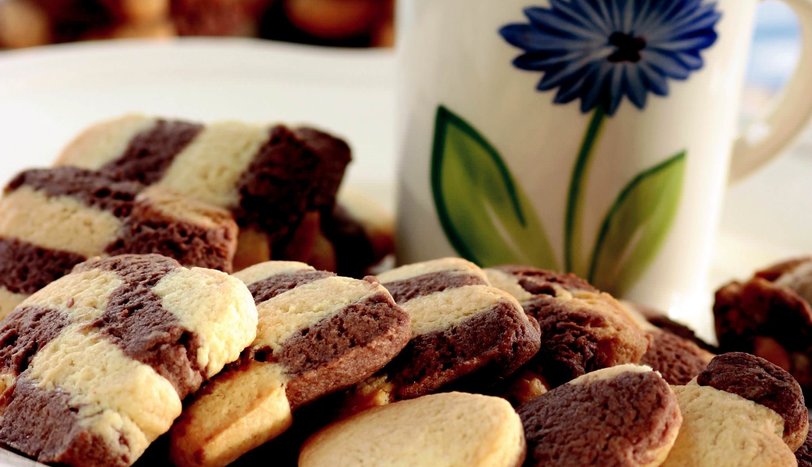 Üstten bakıldığında hamur şeridinin yarısı kakaolu, yarısı sade olmalı. Hamuru bir parmak kalınlığında dilimleyin. Yağlanmış bir fırın tepsisine dizin. Önceden ısıtılmış 180 derece fırında 15 dakikada pişirin. Soğuduktan sonra servis yapın.