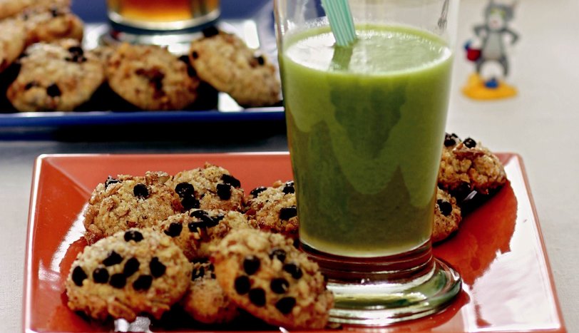 Arzu ettiğiniz kadar elma, kivi ve havucu ayrı ayrı robotun katı meyve sıkacağı bölümünden geçirip sularını çıkartın. Kurabiyeleri meyve suyu eşliğinde ikram edin.
