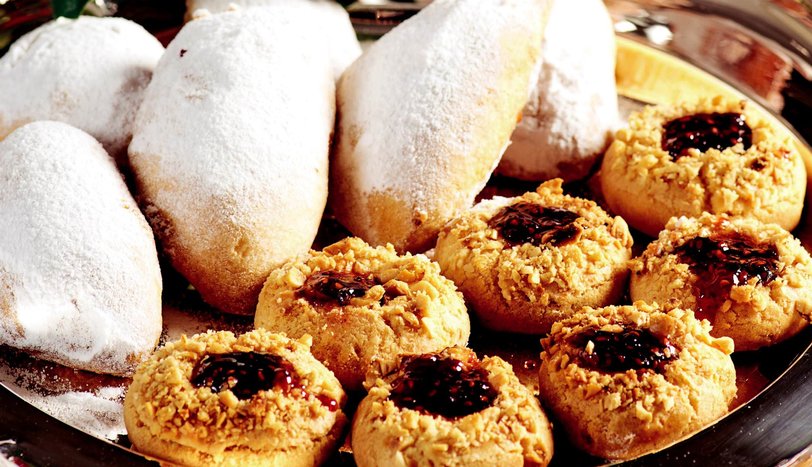 Hamur bitene dek işlemi tekrarlayın.Yağılı kağıt serilmiş bir fırın tepsisine alın. Önceden ısıtılmış 180 derece fırında hafif renk değiştirene dek pişirin. Fırından alıp, üzerine pudra şekeri serpin. Ilık olarak servis yapın.