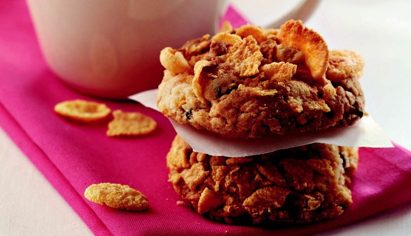 Hamurdan ceviz büyüklüğünde parçalar koparın ve avucunuzun içinde yuvarlayıp, hafif yassılaştırdıktan sonra mısır gevreğine bulayın. Hamur bitene kadar işlem devam edin. Kurabiyeleri yağlı kağıt serilmiş fırın tepsisine aralıklarla dizin.