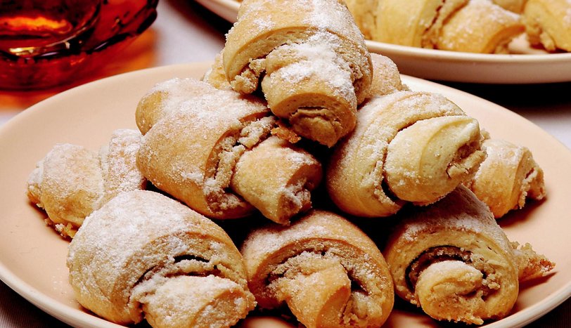 Hamurları kalın kenardan ince tarafına doğru sigara böreği şeklinde sarın. Kurabiyeleri yağlanmış fırın tepsisine dizin. Önceden ısıtılmış 175 derece fırında üzeri pembeleşene kadar pişirin. Üzerine pudra şekeri serpip servis yapın.