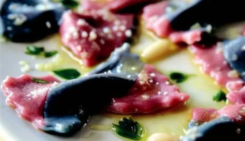 Mor lahana ve pancarlı hamurun birleşmesinden oluştu. Kelebek makarna şekli vererek kuruttum.