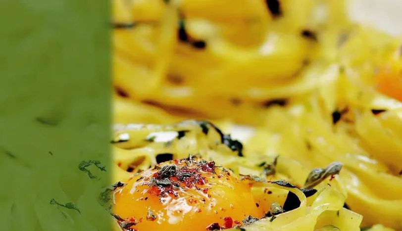 Makarnayı haşlayıp süzdükten sonra kenara alın. Tereyağını bir tencerede eritip ince kıyılmış soğanı pembeleşene kadar kavurun. Üzerine ince kıyılmış ıspanak yapraklarını ilave edin. Ispanak yumuşayınca tozşeker, tuz ve karabiber ekleyin. Şöyle bir karıştırıp haşlanmış makarnayı tencereye ilave edin. Birkaç dakika pişirip ocaktan alın. Ilındıktan sonra elinizle ya da bir çatal yardımı ile döndürerek makarna yuvaları hazırlayın ve bir fırın tepsisine yerleştirin (makarna yuvalarının ortasının açık kalmamasına dikkat edin). Daha sonra orta kısımlarına rendelenmiş parmesan peyniri koyun. Her yuvanın üzerine 1 adet yumurta kırın. Üzerine tuz, karabiber ve pulbiber serpin. Önceden ısıtılmış 180 derece fırında yumurtalar pişene kadar tutun. Fırından alıp servis yapın.