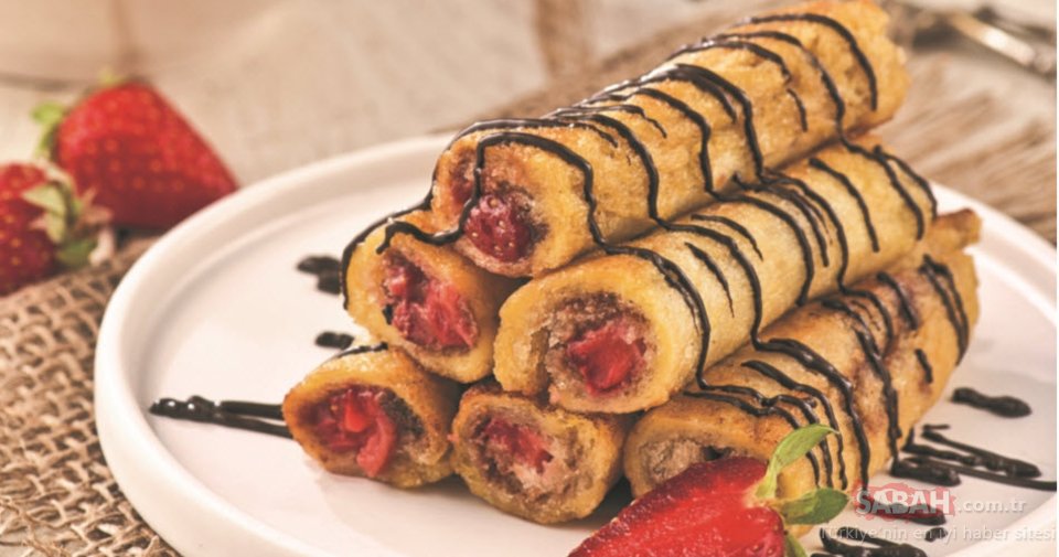 Küp doğradığınız çileklerden 1'er yemek kaşığı serpiştirin. Ekmekleri sıkıca sararak rulo haline getirin.