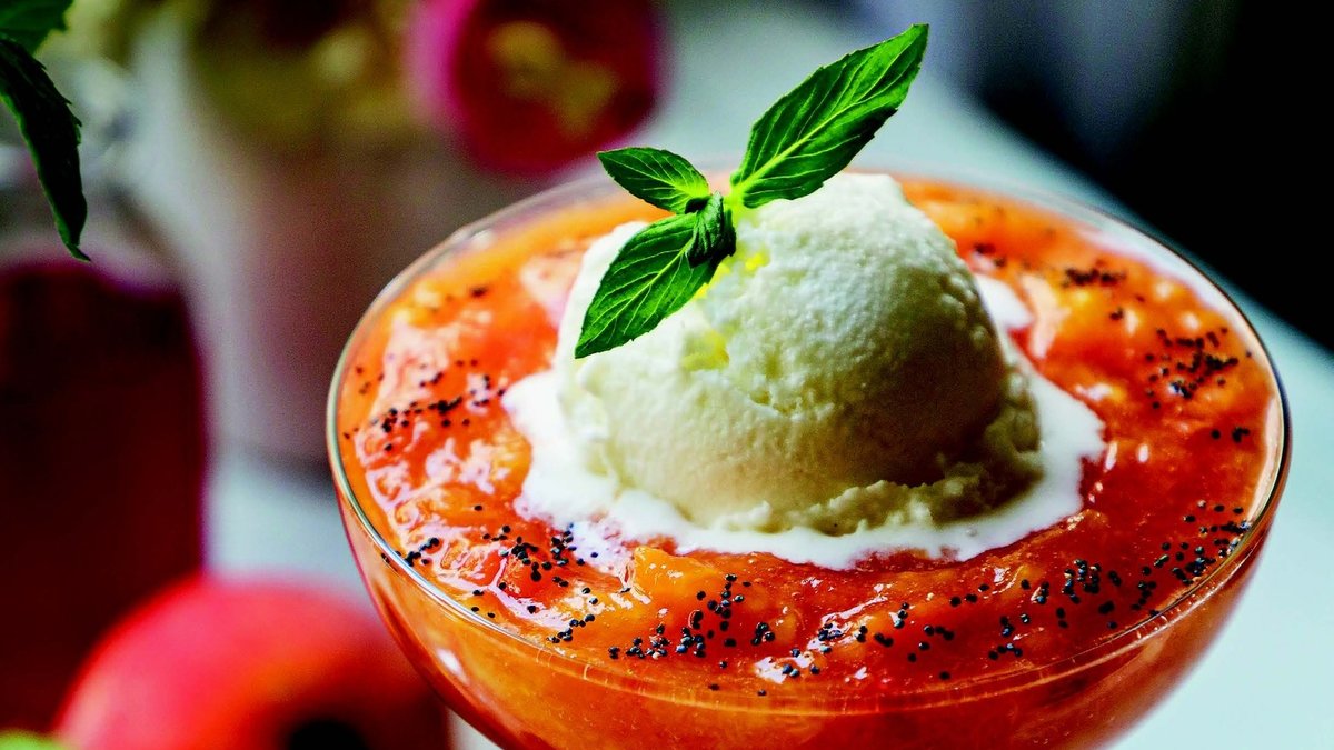 Sıcak yaz günlerinde ferahlamak için hazırlayabileceğiniz bu tatlı rafine şeker kullanılmadan hazırlandı. Hem sağlıklı, hem de serin serin ikram edilebilen gronalalı ve dondurmalı şeftali püresini; damak tadınıza göre Antep fıstığı veya kavrulmuş, kıyılmış fındık ile de servis yapabilirsiniz.