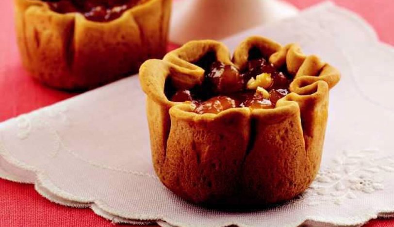 Her bir bezeyi yarım cm kalınlığında açıp, tereyağı ile yağlanmış küçük fırın kaplarının içlerine yerleştirin. Ortalarına balkabaklı harcı pay edip, önceden ısıtılmış 170 derece fırında hamur hafif pembeleşene dek pişirin. Ilık veya soğuk servis yapın.