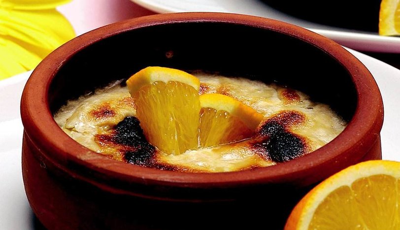 Tahin helvasına portakal ve limon kabuklarını ekleyin. Ardından portakal suyunu katıp karıştırın. Daha sonra küçük güveç kaplarını tereyağı ile yağlayın. Hazırladığınız malzemeyi güveç kaplarına paylaştırın.