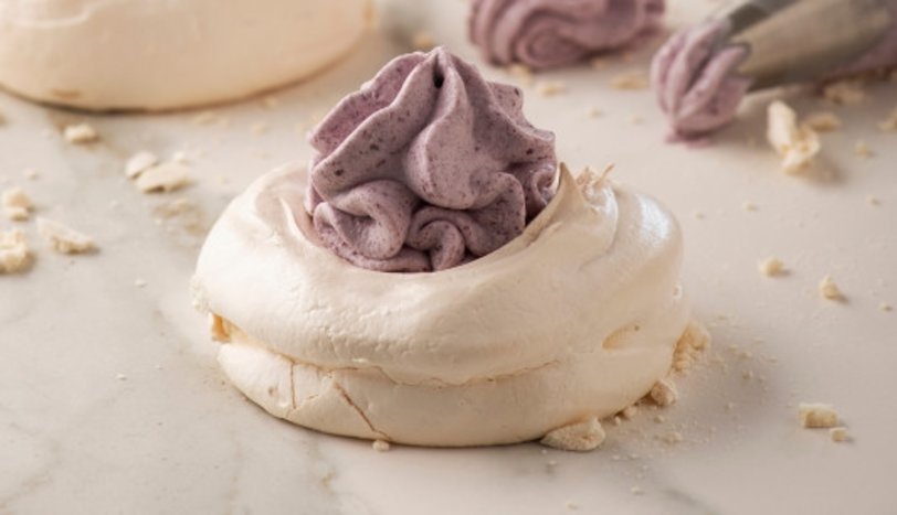 Fırın tepsisine pişirme kağıdı serin. Aralıklı olarak 8'er santimlik daireler çizin. Mereng hamurundan kaşıkla bu dairelerin içlerine eşit oranda pay edin. Ortalarına hafif çukurlar açarak önceden ısıtılmış 130 derecede fırında 50 dakika pişirin. Fırın kapatıp kapağını açmadan tamamen soğuyana kadar fırında bekletin.