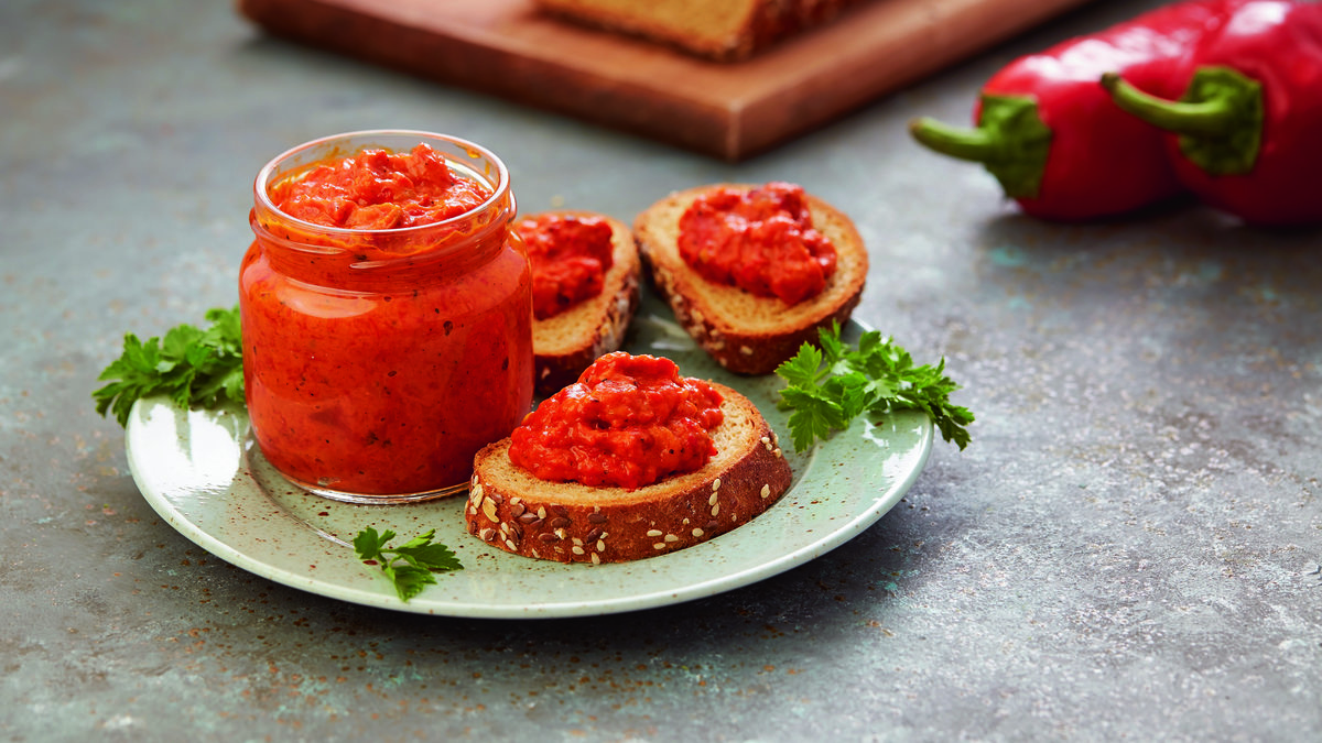 Ajvar, közlenmiş kırmızı biber ve patlıcanla hazırlanan, Balkan mutfağının vazgeçilmez mezesidir. Ekmek üstüne sürmelik, et yemeklerinin yanına eşlikçilik bu lezzet, sofralara renk ve tat katıyor!