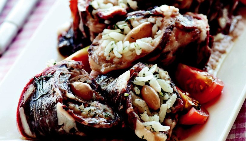 Üzerini 1-2 parmak geçecek kadar su katıp ocağa oturtun ve yumuşayana kadar pişirin. Sulu kaldıysa suyunu süzdükten sonra blenderden geçirip püre haline getirin. 3 2 dilim pastırmayı yan yana koyun. Üzerine barbunya püresi sürün. Pilav koyup, pastırmaları rulo yapın. Daha sona verev olarak ikiye kesin. Kalan pastırmaları da aynı şekilde hazırlayın ve dik olarak bir fırın kabına yerleştirin.