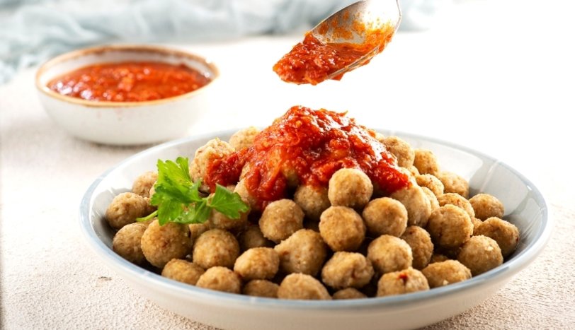 Direk su eklemeden gerektiğinde elinizi suya batırarak yoğurmaya devam edin. Sonrasında minik köfteler şeklinde arada elinizi suya batırarak yuvarlayın.