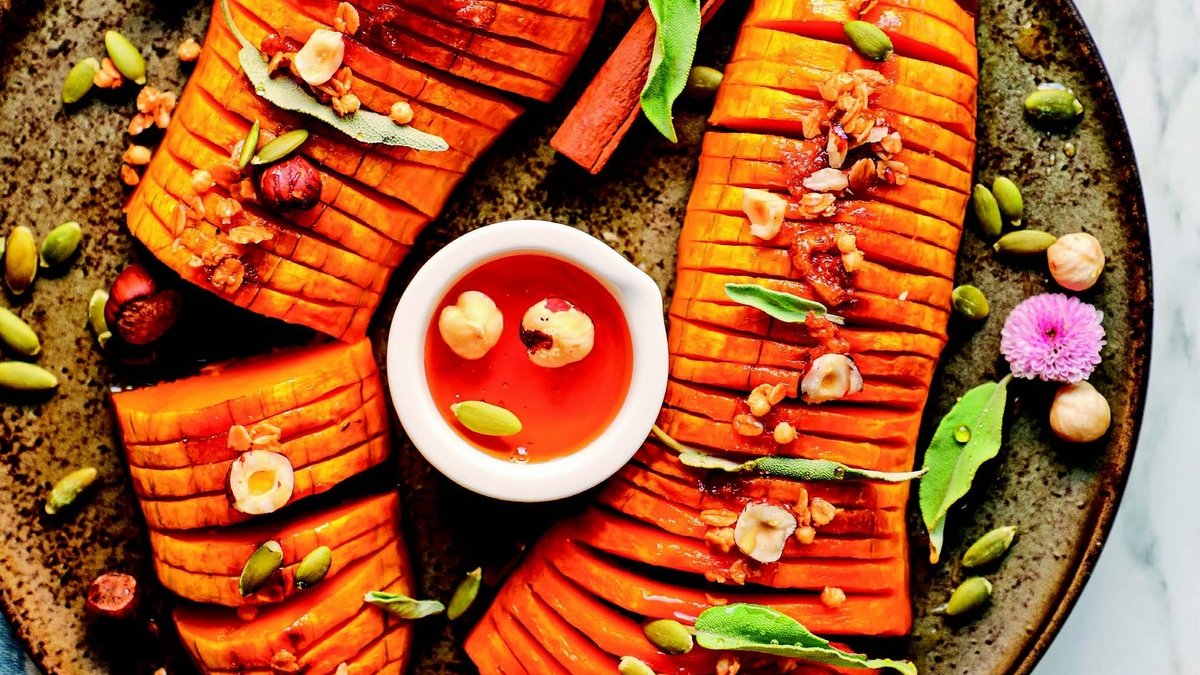 Önceden ısıtılmış 200 derece fırında 15-20 dakika pişirin. Fırından çıkardıktan sonra kabakların üzerine ada çayı yaprakları, granola, kabak çekirdeği ve fındığı serpiştirin. Bal gezdirip sıcak olarak servis yapın.