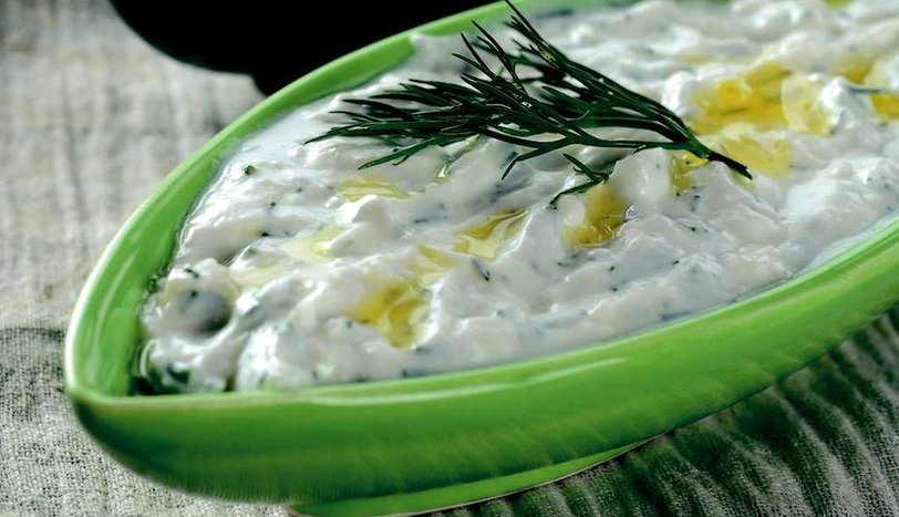 Sarımsağı bir tutam tuzla havanda dövün. Yoğurdu geniş bir kaba alın. Üzerine beyaz peynir, ince kıyılmış dereotu, zeytinyağı ve dövülmüş sarımsağı ekleyin. İyice karıştırıp servis tabaklarına alın. Üzerine arzunuza göre zeytinyağı gezdirin. Dereotu ile süsleyerek servis yapın.