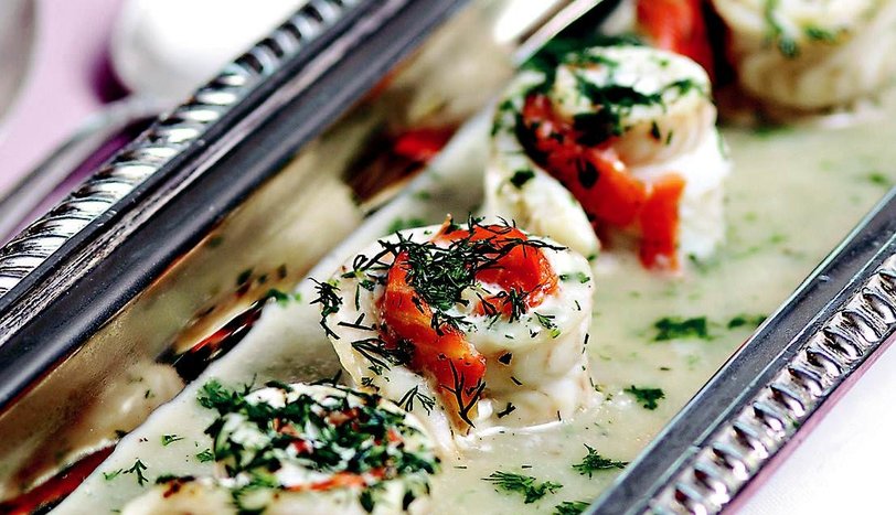 2 Rokfor dip için rokfor peynirini ezip, krema, kıyılmış ceviz, limon suyu ve karabiber ekleyip karıştırın. Kalp milföylerle birlikte sıcak olarak servis yapın.