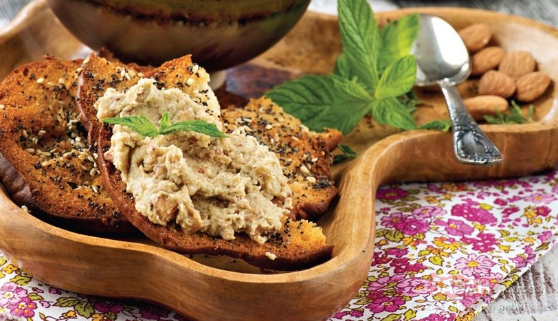 Üzerine badem, tahin, sarmısak, limon suyu, kimyon, tuz ve karabiber ekleyip sos kıvamına gelene kadar çekin. Nanenin yarısını sosa karıştırıp servis tabağına alın.