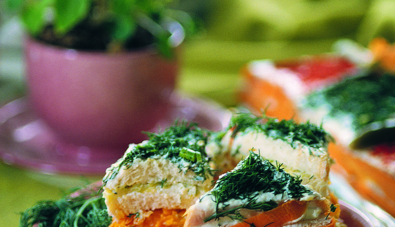 Son olarak 6 adet tost ekmeğini en üste kapatın. Ekmeklerin üzerine pul biber ve ince kıyılmış dereotu serpin. Buzdolabında bir gece bekletin. Dilimleyerek servis yapın.