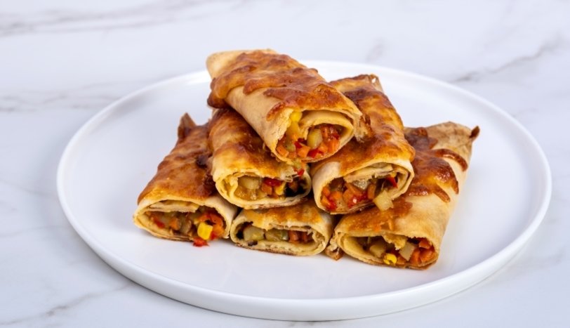 Krep hamurundan bir kepçe alıp tavada arkalı önlü pişirin. Pişen kreplerin üzerine sebzeli harçtan ekleyip rulo şeklinde sarın. Üzerine rendelenmiş kaşar peyniri serpiştirin.