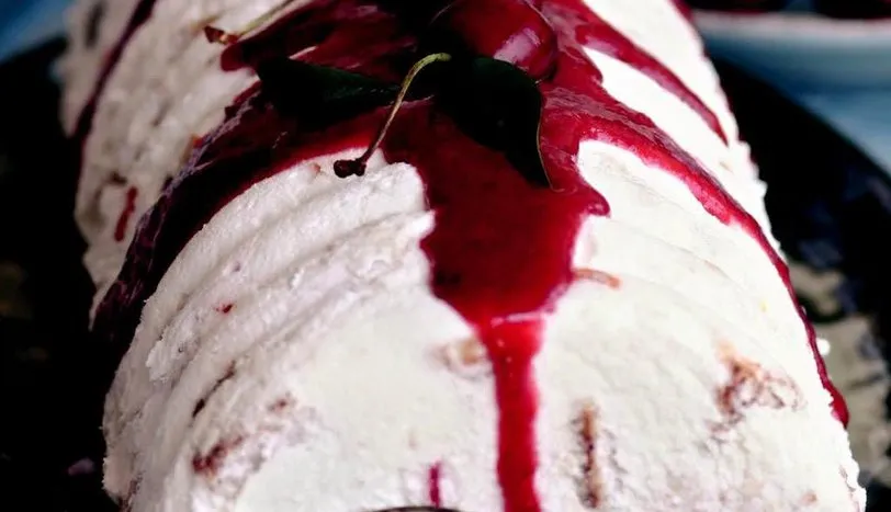 Süt ve krem şantiyi iyice çırpın. Üzerine labne peynirini ilave edin. Ayrı bir yerde ufak parçalara ayırdığınız bayat baget ekmeği portakal kabuğu, incir reçeli ve kayısı ile harmanlayın. Daha sonra krem şantiye ilave edip, karıştırın. Dikdörtgen kek kalıbını streç filmle kaplayın. Harcı kek kalıbına boşaltın. Sosu hazırlamak için, çekirdeklerini çıkardığınız kirazları toz şeker ile birlikte blenderden geçirin. Sosu pastanın üzerine gezdirip, 1 gece buzdolabında dinlendirin. Çıkardığınızda kirazla süsleyerek servis yapın.