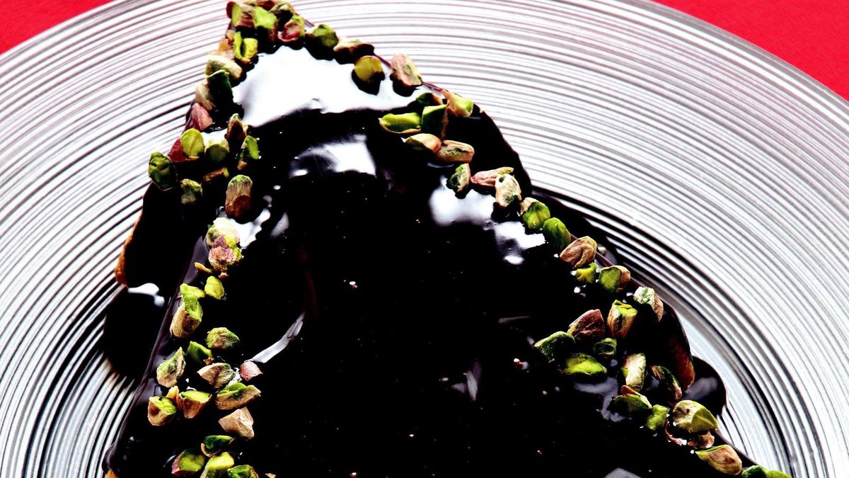 Ilındıktan sonra kalıptan çıkarın ve servis tabağına alın. Keki ıslatmak için su, toz şeker ve likörü bir kapta karıştırıp, üzerine gezdirin. Ganaj kreması için kremayı bir kaba alın ve kaynama noktasına gelene kadar ısıtın. Çikolatayı ilave edin, karıştırarak eritin. Krema ılınınca kekin üzerini kaplayın. Antep fıstığı ile süsleyin ve dilimleyerek servis yapın.AŞÇININ NOTUAşçının notu: Pastanın üzerini dilediğiniz kuruyemişlerle süsleyebilirsiniz.