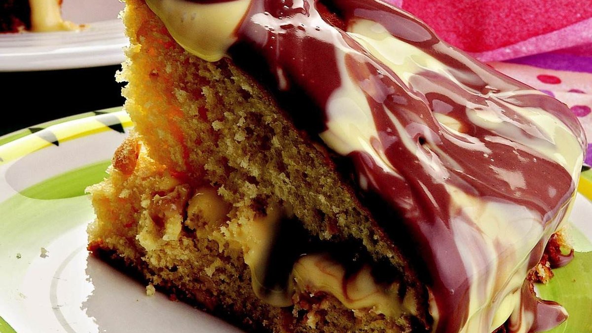 22 cm çapında bir kalıbı yağlayıp, malzemeyi boşaltın. 180 derece fırında pembeleşene kadar pişirin. Vanilyalı pudingi ve kakaolu pudingi üzerindeki tarife göre ayrı ayrı hazırlayın.- 3