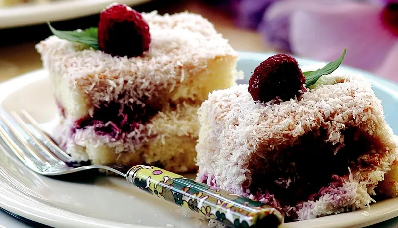 Pandispanya için yumurtaları ve toz şekeri çırpın. Limon suyunu ekleyip karıştırın. Elenmiş un ve kabartma tozunu ilave edip çırpmaya devam edin. Büyük bir fırın tepsisinin içine yağlı kağıt serin ve hamuru boşaltın. Önceden ısıtılmış 170 derece fırında 45-50 dakika pişirin. Krema için, bir tencerede süt, un ve toz şekeri karıştırın. Kısık ateşte muhallebi kıvamına gelene kadar pişirin. Tencereyi ocaktan alın. Margarin ile kabartma tozu ekleyip karıştırın ve soğumaya bırakın. Pişen kekten eşit kare dilimler çıkarıp, enlemesine ikiye kesin. İki yüzünü de şekerli süt ile ıslatın. Taban olacak kekin üzerine krema sürün. Frambuaz ve böğürtlenleri dizip üzerine krema yayın. İkinci kat kek ile üzerini kapatıp hindistancevizine bulayın. Buzdolabında 1 saat bekletip servis yapın.