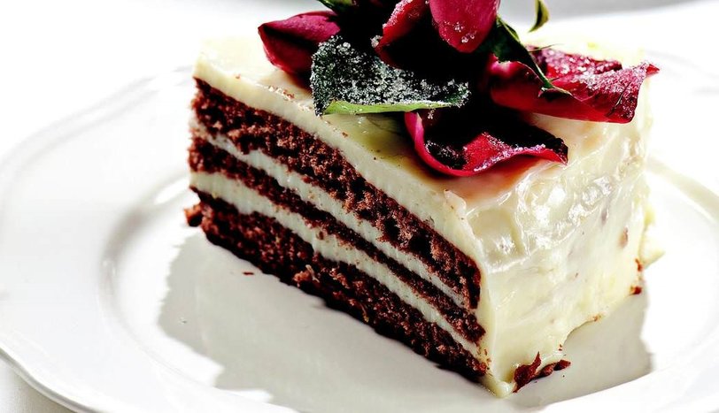 Güllerin yapraklarını ayırdıktan sonra yıkayıp, kurulayın. Yumurta akını hafifçe çırpın ve gül yapraklarının uç kısımlarını bulayın. Daha sonra toz şekere bulayın ve pastanın üzerine yerleştirin. Buzdolabında 1 saat beklettikten sonra dilimleyerek servis yapın.