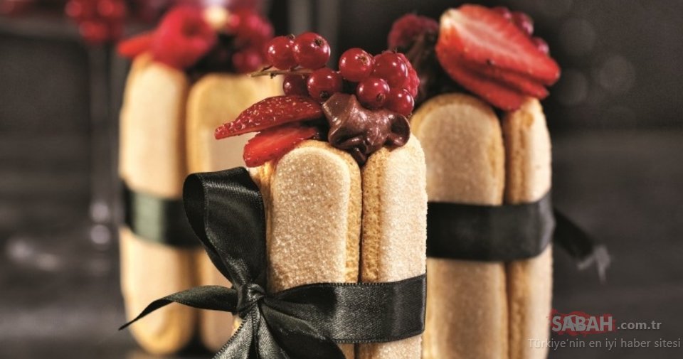 Kremayı sıkma torbasına alın. 5 adet kedidili ile dik bir çember oluşturun. Altına yarım kedidilini taban olarak koyun ve yarım su bardağı suda erittiğiniz kahve ile biraz ıslatın. Ortasına hazırladığınız kremayı sıkın. Kurdele ile bağlayarak sabitleyin. Çilek ve frenk üzümü ile süsleyerek servis yapın.