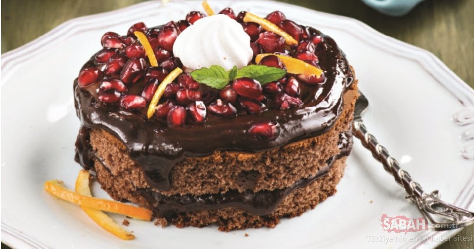 Orta boy çember kalıpla yuvarlaklar çıkarın. Yuvarlak kekleri enlemesine ortadan ikiye kesin ve 1 adet kekin üzerine kestaneli kremadan sürün ve diğer keki üzerine kapatın. Üzerini tekrar kestaneli krema ile kaplayın. Diğer kekleri de aynı şekilde hazırlayıp üzerilerini nar taneleri, beze ve ince dilimlenmiş portakal kabuğu ile süsleyin.