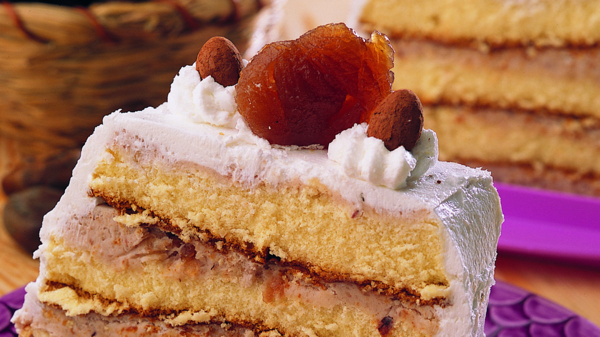 Pandispanyanın ilk katını servis tabağına alıp ,üzerine karışımdan sürün. İkinci kat pandispanyayı yerleştirip kestaneli karışımdan sürün. Diğer katlara da aynı işlemi uygulayın. Kalan krem şantiyi sütle çırpıp, pastanın üzerini sıvayın. Bu şekilde 1-2 saat buzdolabında bekletin. Kestane şekeri ile süsleyip servis yapın.