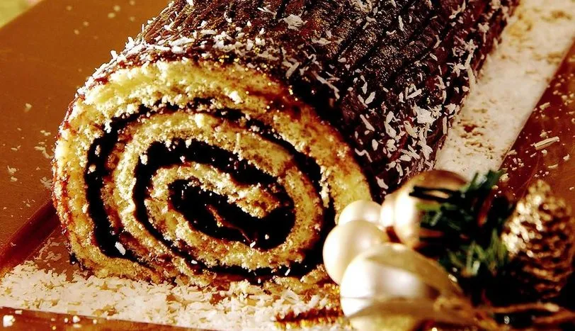 Pastanın pandispanyasını hazırlamak için, yumurtaları derin bir kaba alın. Üzerine toz şeker ekleyip kabarıncaya kadar mikserle çırpın. Süt, vanilya, kabartma tozu ve un ilave edip, tahta kaşıkla karıştırın. Bir fırın tepsisini yağlı kağıtla kaplayın. Hazırladığınız sıvı kıvamlı hamuru tepsiye boşaltın. Daha sonra kağıdın üzerine spatula yardımıyla yayın. Önceden ısıtılmış 200 derece fırında pembeleşene kadar yaklaşık 10-15 dakika pişirin. Diğer taraftan kremayı hazırlayın. Bunun için sütü bir tencereye alın ve orta ateşte kaynamaya bırakın. Yumurta sarılarını, toz şeker, un, kakao ve nişasta ile çırpın. Daha sonra kaynayan süte azar azar ve sürekli karıştırarak ekleyin. Karışım krema halini alana kadar karıştırarak pişirin. Ocaktan alıp içine kestane püresini ilave edin ve mikserle çırparak kremaya yedirin. Pişen pandispanyayı fırından çıkarın. Ilınması için 5-6 dakika bekletin. Bu arada kremayı bir tepsiye boşaltın ve karıştırarak soğutun. Pandispanyayı altındaki kağıtla birlikte rulo şeklinde sarın. Açıp üzerine kestaneli kremanın 2/3'ünü yayın. Keki rulo yaparak sıkıca sararken, bir yandan da kağıttan ayırın. Ruloyu düz bir tabağın üzerine alıp, iki ucundan ince birer dilim keserek düzleyin. Kalan krema ile üstünü kaplayın. Bir çatalla üzerine çizgiler yapıp ağaç kabuğu görünümü verin. Buzdolabında 2 saat kadar dinlendirin. Üzerine pudra şekeri, hindistan cevizi ve yenilebilir simli pasta süsü serpin. Kiraz şekerlemesi ile süsleyerek servis yapın