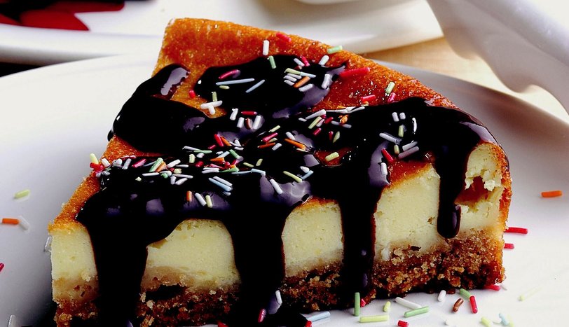 Fırından alıp, keki kalıptan çıkarmadan, en az 3 saat bekletin. Sosu hazırlamak için, çikolatayı benmari usulü eritin. Çikolata eridikten sonra vanilya ve suyu ekleyip hızlı şekilde karıştırın. Buzdolabında beklettiğiniz cheesecake'i dilimleyip, üzerine çikolata sos gezdirerek servis yapın.