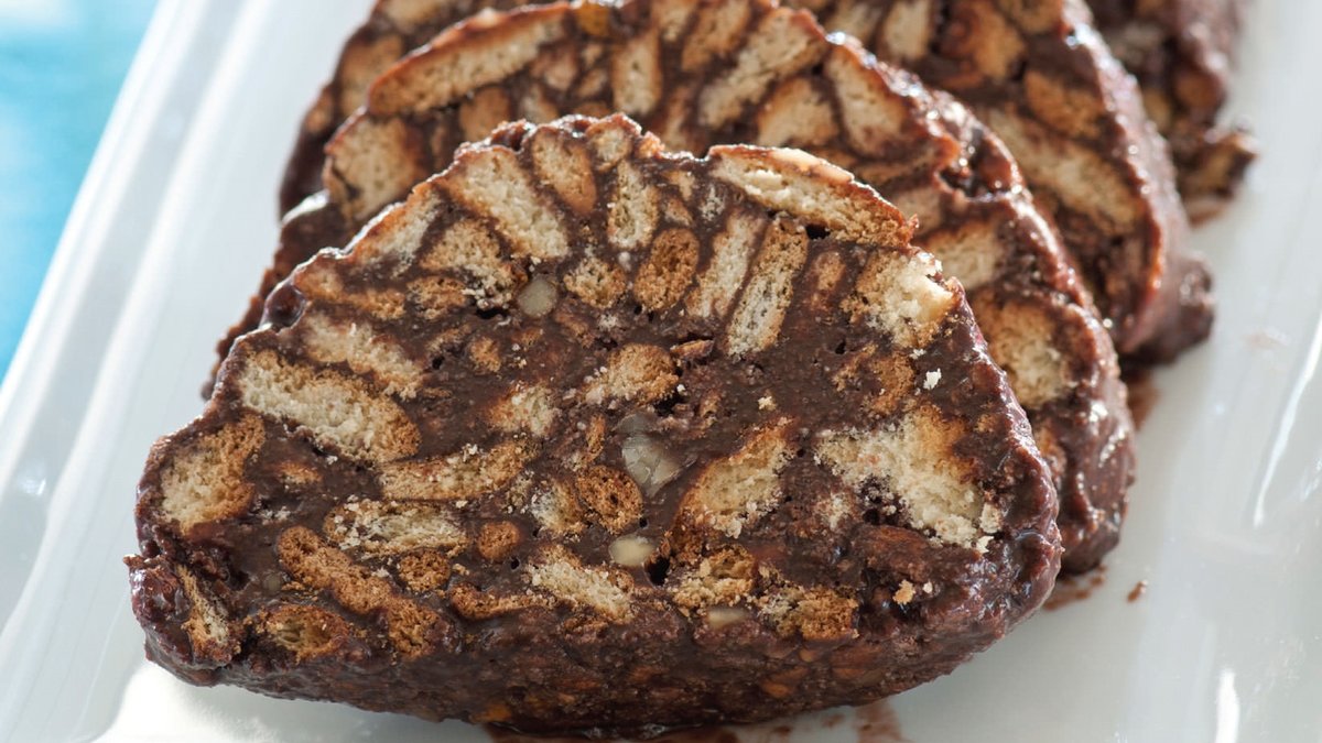 Tereyağını eritin. Ilındıktan sonra içine süt, toz şeker ve kakao ilave edip, karıştırın. Rendelenmiş portakal kabuğu, ceviz ve iri parçalar halinde kırdığınız bisküviyi katıp, yoğurun.