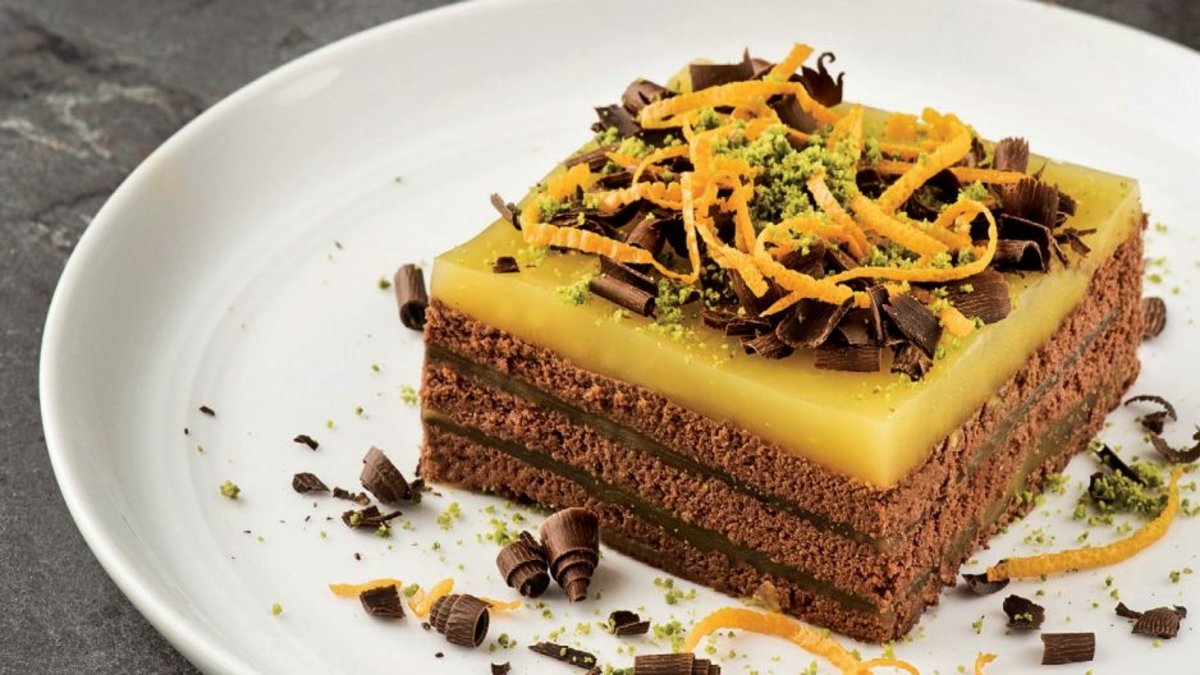 İçine karışımdan 3-4 yemek kaşığı döküp spatula yardımıyla düzeltin ve üzerine 1 paket bisküviyi dizerek yerleştirin. Aynı işlemi 2 kez daha tekrarlayıp, en üste karışımı dökün ve spatula yardımıyla düzeltin. Buzdolabında soğuyana dek dinlendirip, dilimleyin. Üzerini çikolata, portakal kabuğu ve antep fıstığı ile süsleyip servis yapın.AŞÇININ NOTUBu tatlıyı porsiyonluk kaplara da hazırlayabilirsiniz. Portakal yerine mandalina ve vişne suyu ile de yapabilirsiniz.