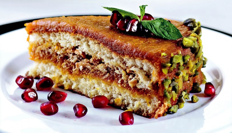 Onun da üzerine cevizi serpin ve diğer pandispanyayı kapatın. Kalan balkabağı püresi ile her tarafını kaplayın. Pastanın kenarlarını file antep fıstığı ile süsleyin ve buzdolabında 1 saat bekletin. Nane yaprağı ve nar taneleri ile süsledikten sonra dilimleyerek servis yapın.