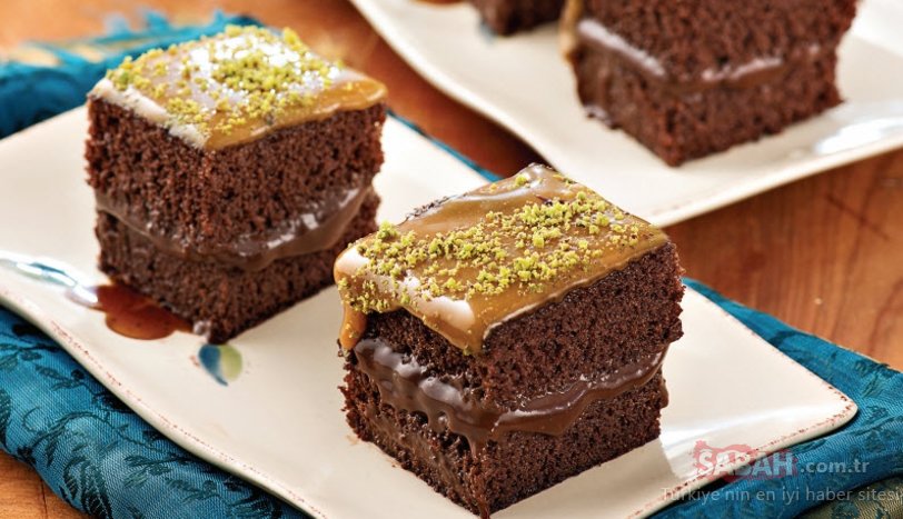 Enlemesine ikiye kesip kenara alın. Arası için kremayı ısıtın. Çikolataları ekleyip, eriyene dek karıştırın. Ocaktan alıp ılınmaya bırakın. Daha sonra iki parça kekin arasına kremalı çikolata sürüp üst üste kapatın.