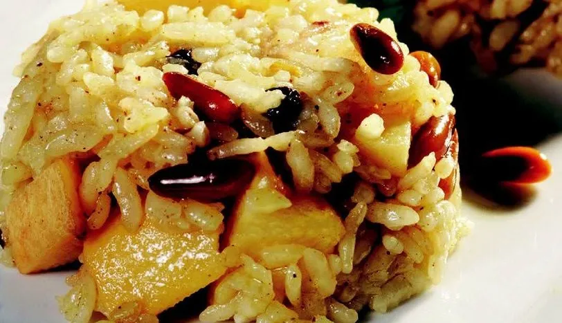 Pirinci kaynar tuzlu suda 20 dakika bekletin. Ayvaları soyup küçük kuşbaşı doğrayın. Tereyağını tencerede eriterek ayvaları 5 dakika kavurun. Pirinci yıkayıp süzün. Fıstıklarla beraber ayvaların üzerine ekleyin. 5 dakika kadar kavurun. Limon suyu, tuz, safran, şeker ve sıcak et suyunu ilave edin. Üzümleri yıkayıp ekleyin. Kaynamaya başlayınca ocağı kısıp, pilav suyunu çekene kadar pişirin. Biraz demlendikten sonra sıcak olarak servis yapın.