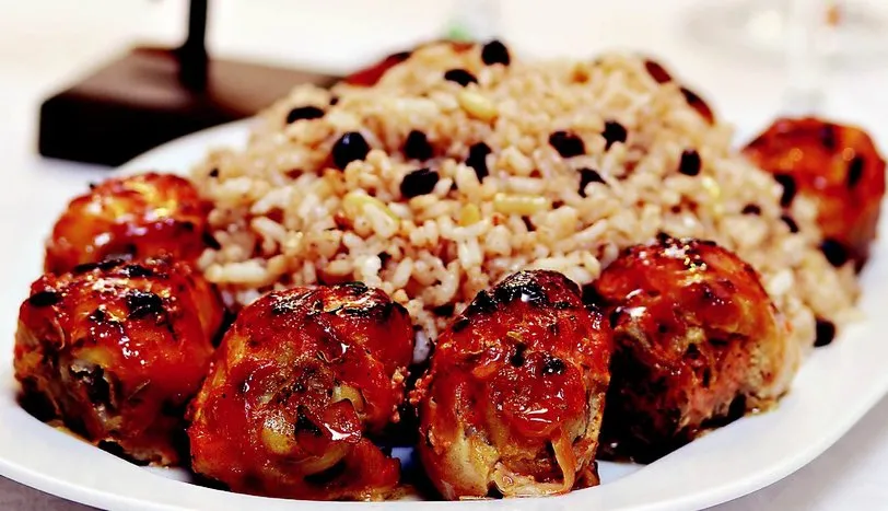 Pirinci tuzlu sıcak suda bir saat dinlendirin. Nişastası gidene dek yıkayıp, iyice süzdürün. Yemeklik doğranmış soğanı sıvı yağ-zeytinyağı karışımında pembeleşene kadar kavurun. Su, toz şeker, tuz ve karabiber ekleyip kaynamaya bırakın. Su kaynayınca pirinç ekleyip karıştırın. Kuş üzümü ekleyip 15 dakika pişirin. Dolmalık fıstığı ayrı bir yerde kavurup pilava ilave edin. Nane, yenibahar ve tarçın ekleyip, harmanlayın. Ocaktan alıp, kızarmış tavuk butları ile servis yapın.