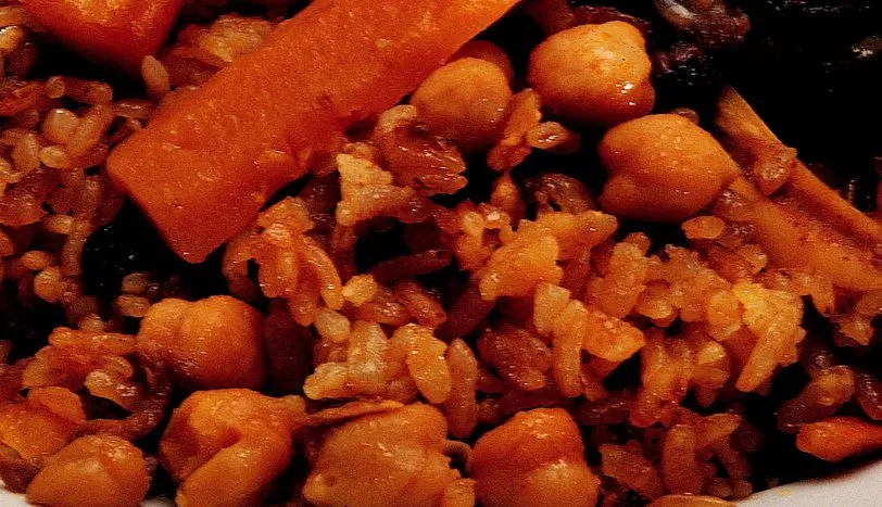 Nohudu bir gece önceden suda bekletip, ertesi gün haşlayın ve suyunu süzün. Tencereye tereyağınıalıp, yemeklik doğranmış soğanları yağda kavurun. Salçayı ekleyin. Daha sonra dolmalık fıstık, kuş üzümü,küçük doğranmış havuç ve parçalara ayrılmış kuzu etini ilave edip kavurun. Kavrulduktan sonra üzerine et suyu ve tuz ekleyin. Etin pişmesine yakın, pirinci ilave edin. Kısık ateşte, tencerenin ağzı kapalı olarak suyunu çekene kadar pişirin. Nohudu ilave edin ve bir kez karıştırın. Suyunu çektikten sonra ateşten indirip servis yapın.