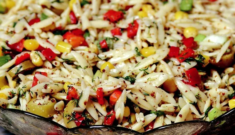 Şehriye haşlanırken toz şeker, tuz ve hardalı iyice karıştırın. Biberleri küp şeklinde kesin. Mısır tanelerini süzüp, yıkayın. Soğanları incecik kıyın. Haşlanan ılık şehriyeye, sosu ve diğer malzemeleri ekleyip iyice harmanlayın