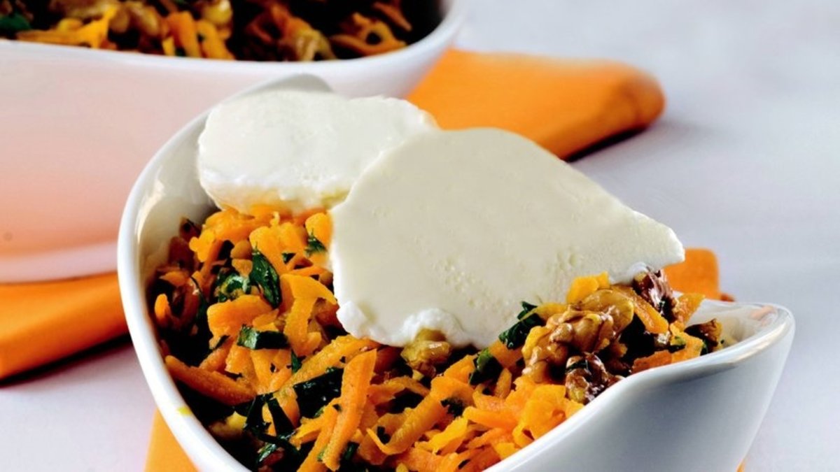 Havuçları rendenin kalın tarafıyla rendeleyin. Ayçiçek yağını geniş bir tavaya alıp havucu kavurun. Soğuduktan sonra geniş bir kaba alın. Elinizle küçük parçalara ayırdığınız cevizleri havuca ekleyin.