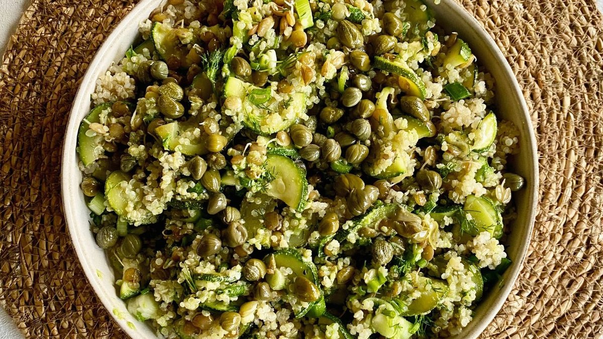 Hem hafif hem de doyurucu bir lezzet arayanlara! Protein deposu kinoa ve ferahlatıcı kabaklarla hazırlanan bu salata, yaz günleri için ideal bir seçenek.