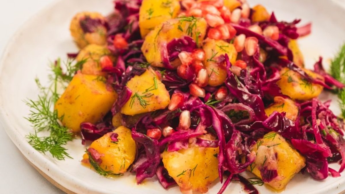Mor Lahanalı Patates Salatası: Sağlıklı, vitamin dolu ve renkli sofralar için ideal! Taptaze mor lahana ve çıtır patatesin enfes uyumunu keşfedin; pratik tarifiyle hem göz zevkinize hem de damak tadınıza hitap ediyor.