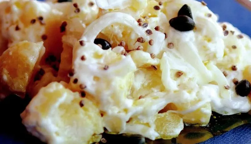 Patatesleri kabuklarıyla birlikte, 2 çorba kaşığı tuz eklenmiş suda haşlayın. Sıcakken kabuklarını soyup küp doğrayın. Üzerine 1 tatlı kaşığı tuz ve zeytinyağını gezdirip harmanlayın. Sıcak halde buzdolabına yerleştirip, 1 gece dinlendirin. Çıkardığınızda piyazlık doğranmış soğan, mayonez, limon suyu, kapari ve kişnişi ilave edin. Karıştırıp, servis yapın.