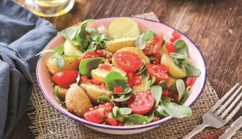 Özellikle bahar ve yaz mevsiminde yeşillik tezgahlarını dolduran semizotunu taze patates ile bir araya getirdik. Bu lezzet birleşimini günün her saatinde deneyebilirsiniz. İşte kolay ve nefis tarifiyle semizotlu, bulgurlu taze patates salatası tarifi.