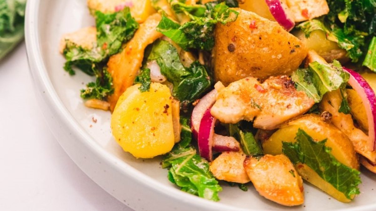 Tavuklu Patatesli Kale Salatası: Besleyici, doyurucu ve lezzet dolu! Her lokmada tazelik ve enerji.