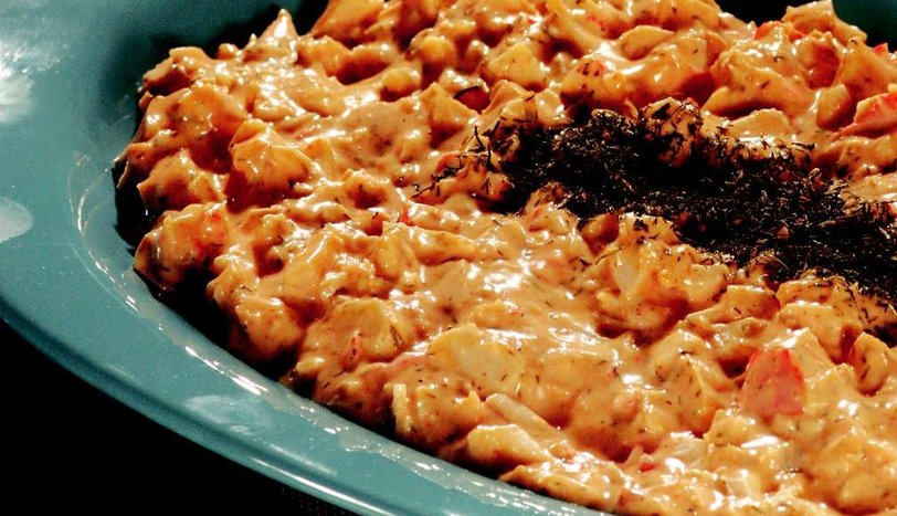 Mayonez, ketçap, ince kıyılmış dereotu, sızma zeytinyağı ve tuzu iyice karıştırarak kıvamlı bir sos hazırlayın. Yengeç etlerini tavla zarı büyüklüğünde doğrayın. Doğranmış yengeç etlerini sosun içine koyup karıştırın. Salatayı servis tabağına alıp dereotu ile süsleyerek servis yapın.AŞÇININ NOTUAşçının notu: Yengeç etini büyük marketlerden dondurulmuş olarak da satın alabilirsiniz.