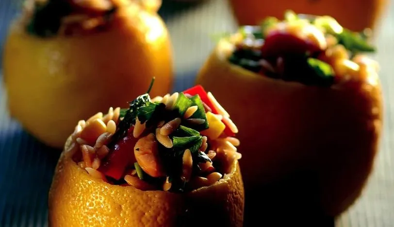 Arpa şehriyeyi bir tavada hafif rengi dönene kadar kavurun. Daha sonra makarna gibi haşlayıp, süzün ve derin bir kaseye alın. Diğer tarafta hardal, sirke, zeytinyağı, toz şeker, tuz ve limon suyunu karıştırın. Sıcak şehriyenin içine katıp karıştırın. Çekirdeği çıkartılmış ve küp şeklinde doğranmış kırmızı biber, ince kıyılmış taze soğan, çekirdeği çıkartılmış zeytin, kıyılmış dereotu, tuz, karabiberi şehriyeye ilave edin. Bütün malzemeyi karıştırıp tatların birbirine geçmesi için buzdolabında 1 saat bekletin. Ortadan ikiye kestiğiniz limonların içini çıkarıp arpa şehriye salatasını paylaştırın ve servis yapın.