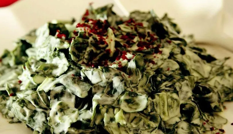 Ispanak yapraklarını iyice yıkayın ve süzün. Kıyın ve derin bir kaba alın. Yoğurt ve dövülmüş sarımsağı karıştırıp, ıspanağın üzerine dökün. Zeytinyağı, tuz, pul biber ekleyip,tüm malzemeyi karıştırın ve servis yapın.