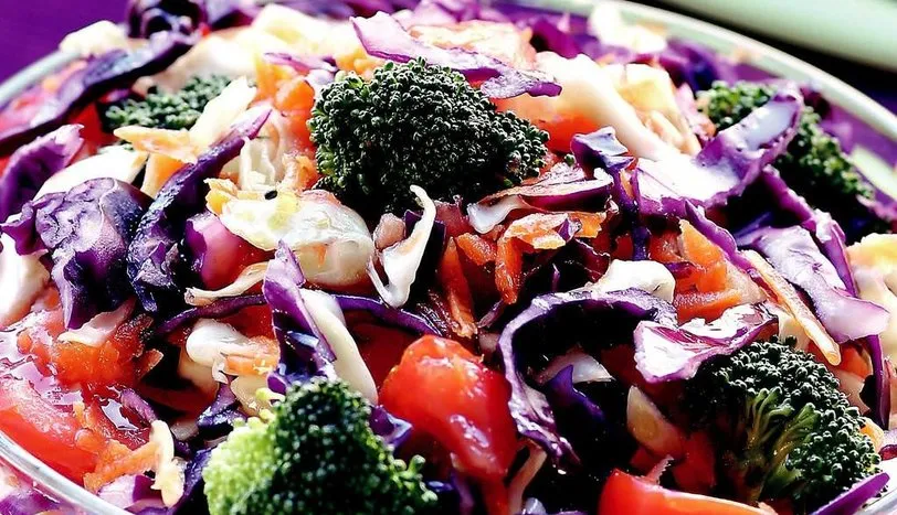 Derin bir salata kasesine havucu rendeleyin. Kırmızı ve beyaz lahana yapraklarını yıkadıktan sonra süzüp, incecik kıyın. Brokoliyi çiçeklerine ayırın ve yıkayıp, süzün. Diğer sebzelerle birlikte havuca ekleyin. Küp doğranmış domatesi de kattıktan sonra tuz ve kekiğini ayarlayıp, bütün malzemeyi karıştırın. Bir kasede zeytinyağı, limon suyu ve balzamik sirkeyi karıştırıp, salatanın üzerine gezdirin. Tatların birbirine geçmesi için buzdolabında yarım saat bekletin ve servis yapın.